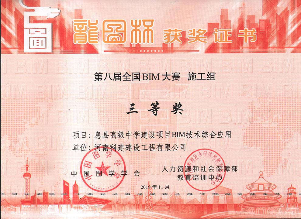 第八届龙图杯全国BIM大赛三等奖